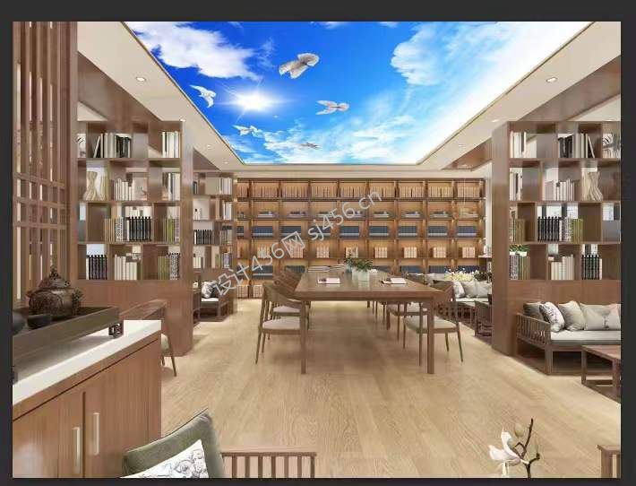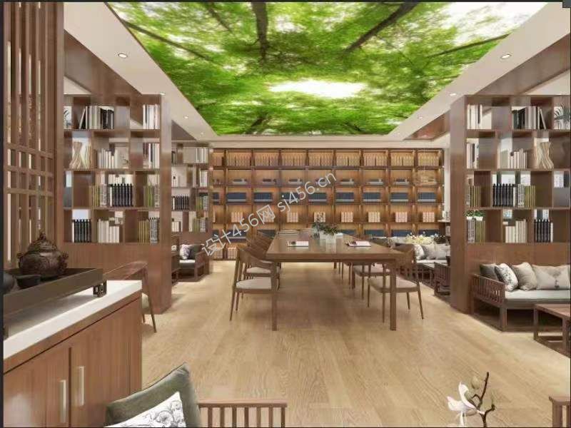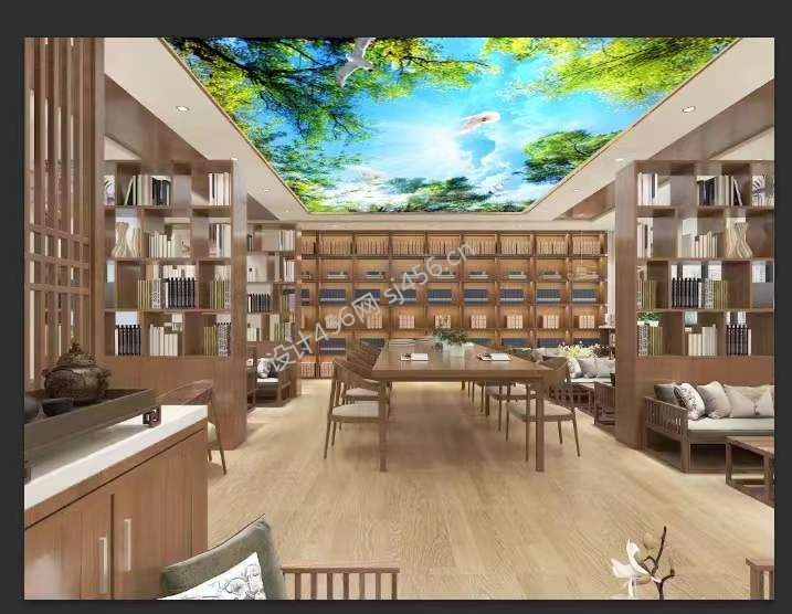 书房软膜天花,图书馆吊顶,阅览室灯膜风效果图