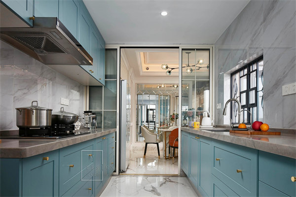 关于橱柜,这些年流行的肤感柜膜、烤漆面板,真的都不是很实用,前者难以清理,后者不耐脏易留指纹,对于厨房这种使用空间来说,确实是华而不实了。