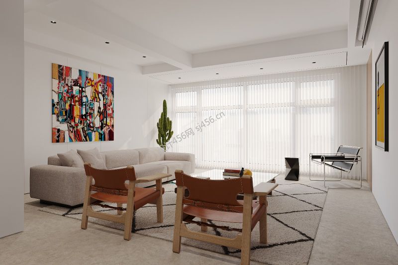 诚鹏中央华府121平简约风格三居室装修案例风效果图