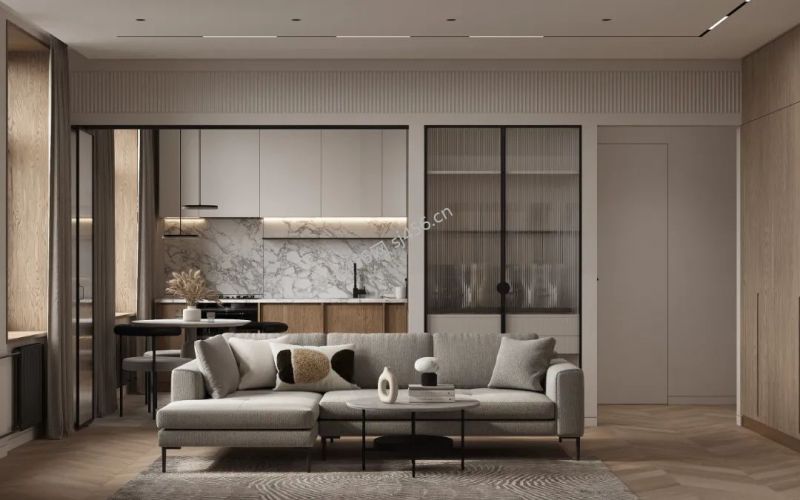 诚鹏中央华府121平简约风格三居室装修案例风效果图