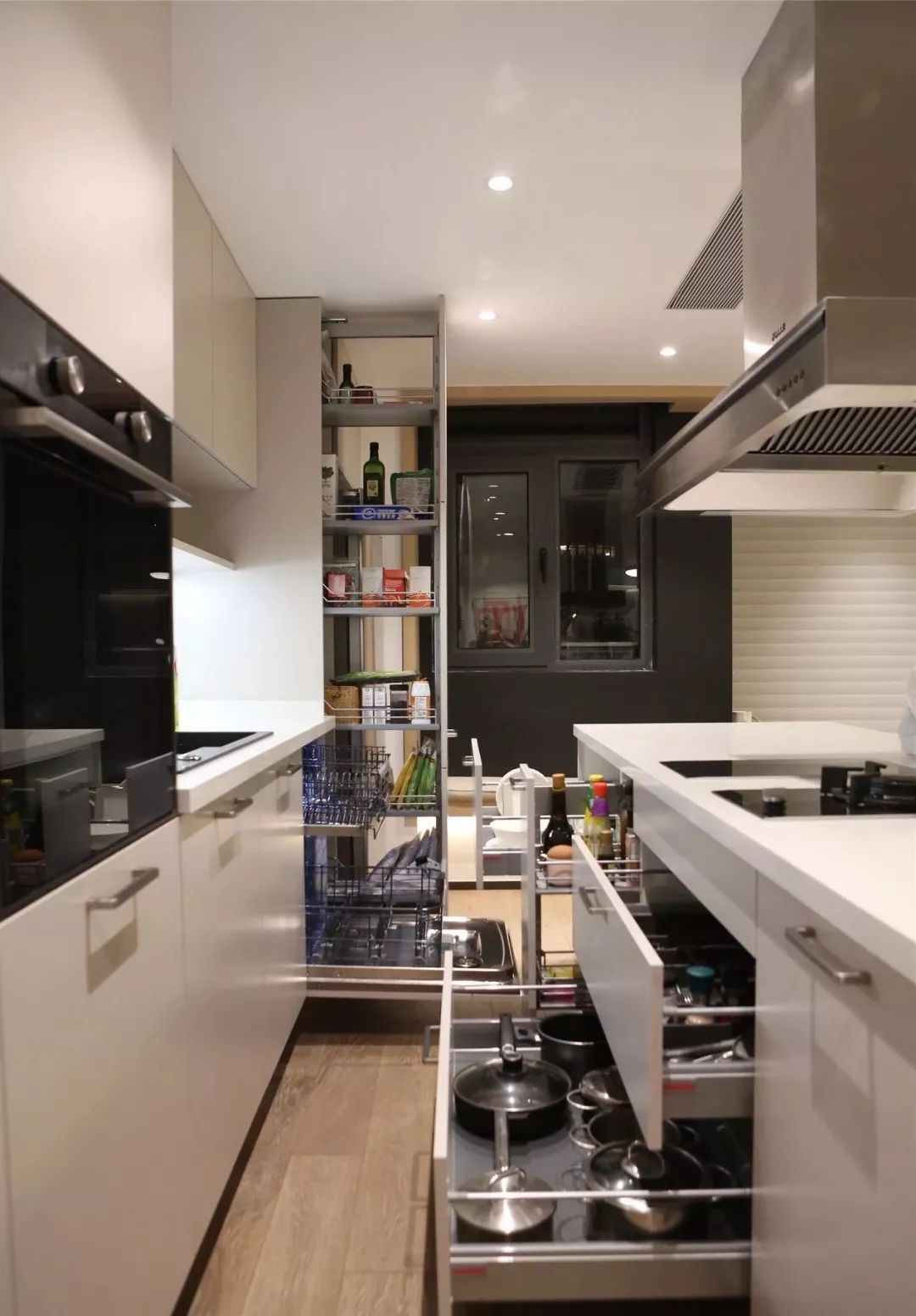 ▲拉篮是的橱柜设计,收纳与使用起来都是更加方便。