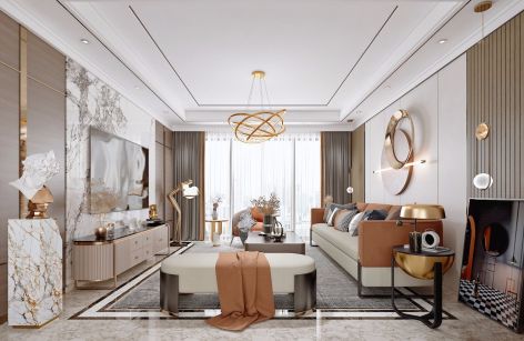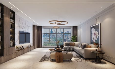 万象世纪125㎡三居室现代轻奢装修案例风效果图