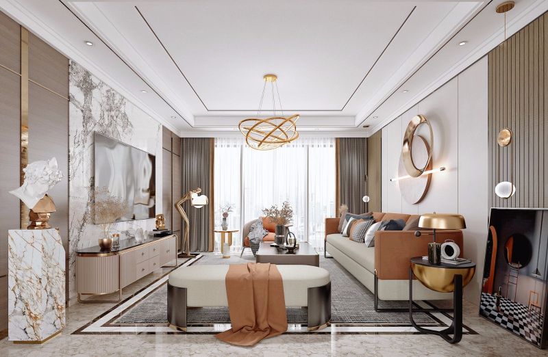中达宜居荷苑100㎡二居室现代轻奢装修案例