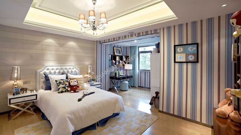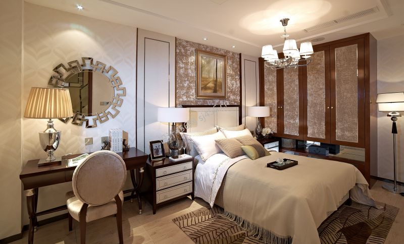 111平米轻奢风格三室两厅卧室床头装修效果图