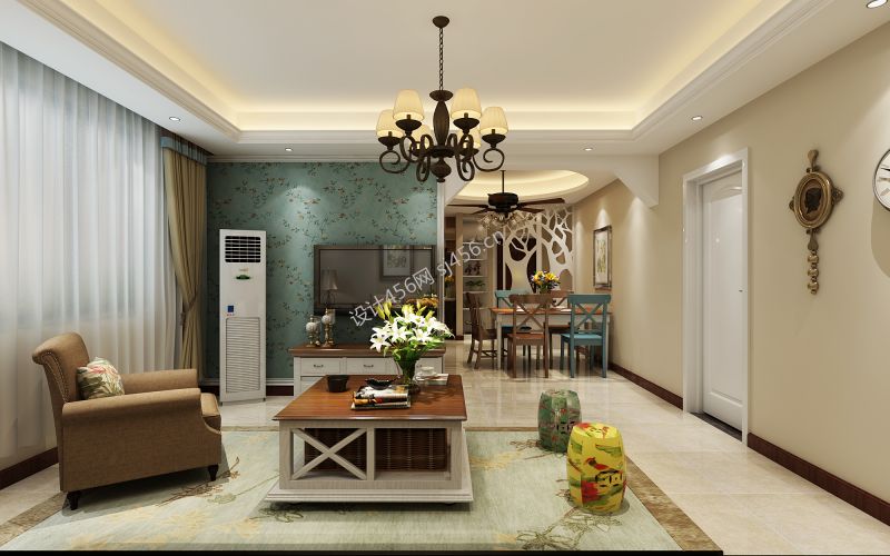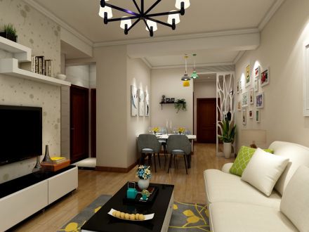 南湖春城107平米现代风格三居室装修效果图风效果图