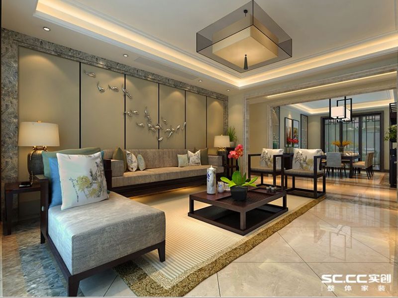 中海凯旋门新中式135平三居室装修案例