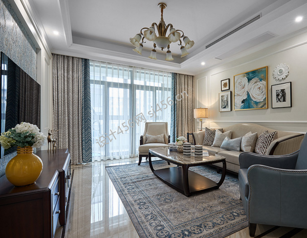 龙湖·瑶海天街美式风格143平米四居室设计案例风效果图