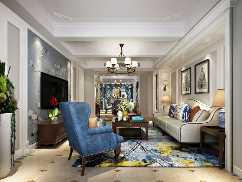合肥龙发装饰 万达华府110平米美式风格三居室装修效果图