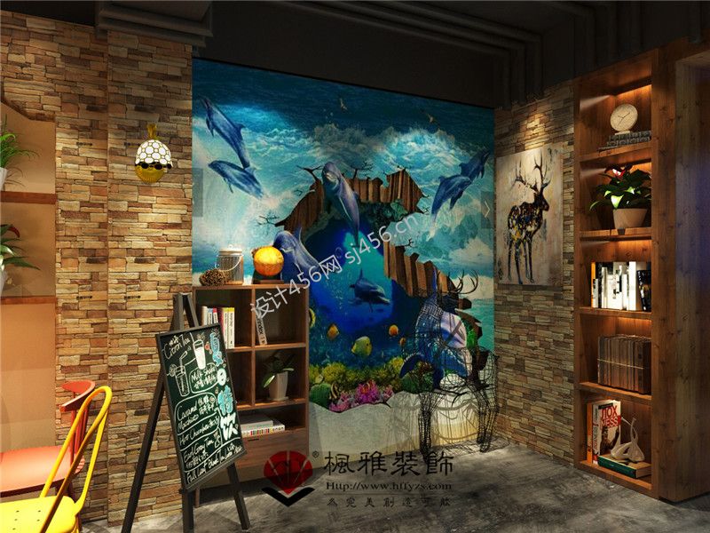 工业风142平米咖啡馆背景墙装修效果图