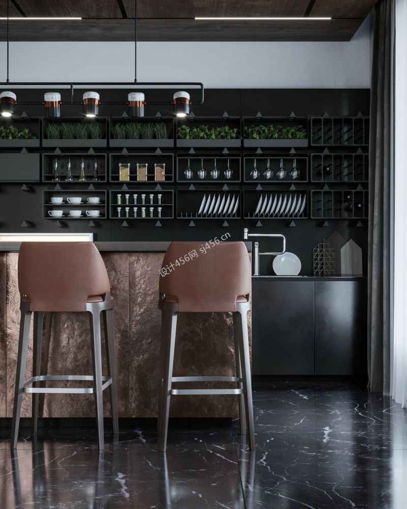 150㎡现代简约风四居室酒柜吧台装修效果图