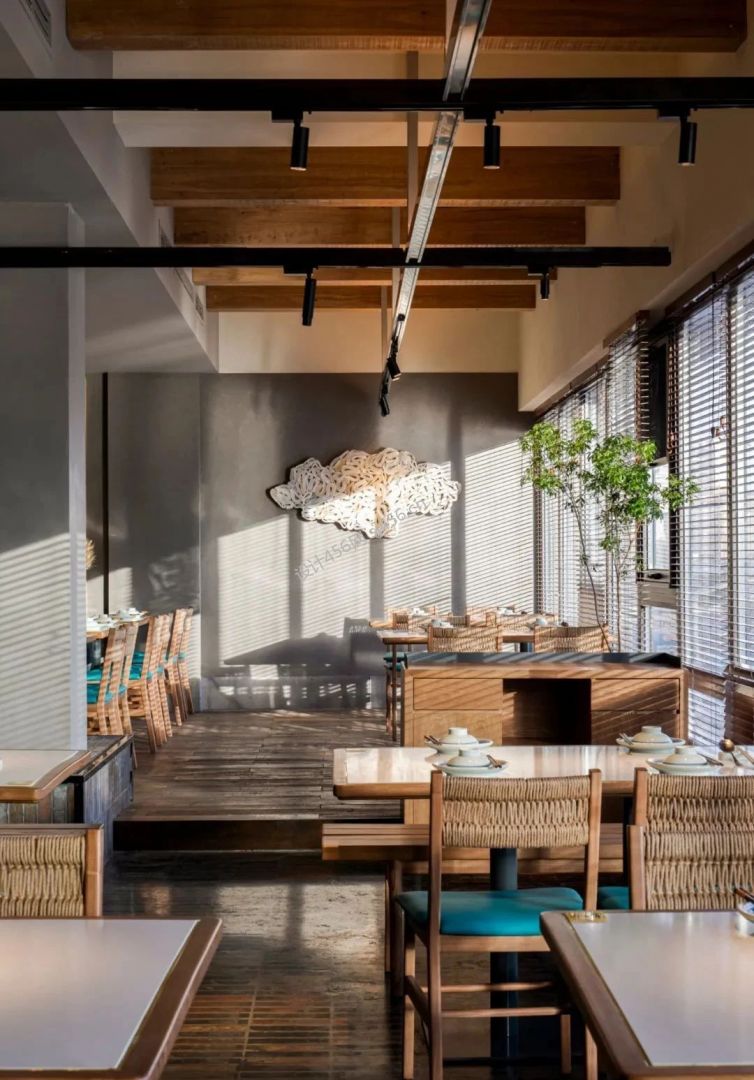 200平米现代中式轻食食堂隔断装修效果图
