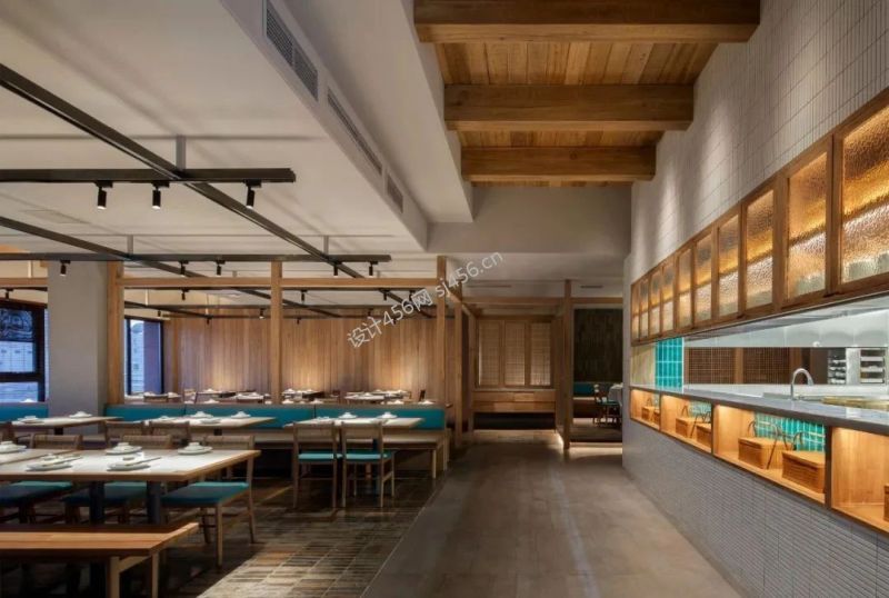 200平米现代中式轻食食堂过道装修效果图