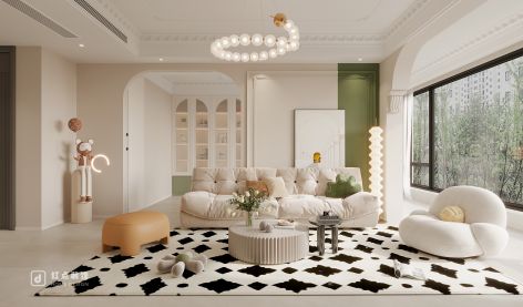 龙居山庄三居室110平米温馨奶油风装修案例风效果图