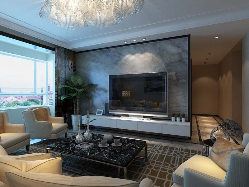 薛家湾桃源盛景156平米现代风格客厅效果图薛家湾装修设计城市人家装饰呼和浩特公司
