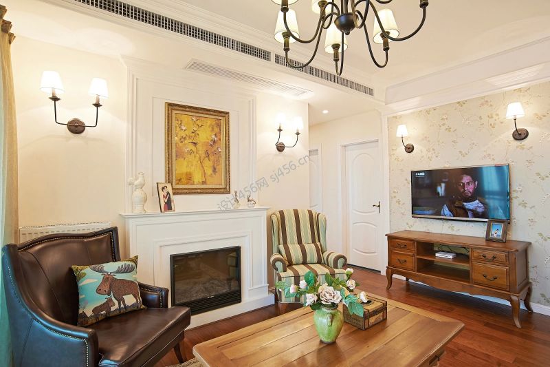兴泰东河湾美式风格客厅壁炉装潢效果图赏析