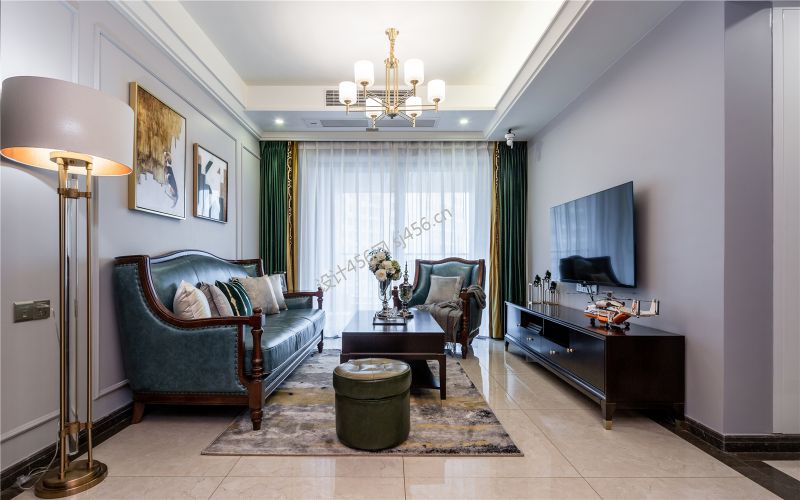 滨江世纪佳城104平米美式风格三室两厅装修案例风效果图