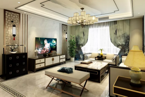 北大华府145平米现代中式风格三居室装修案例风效果图