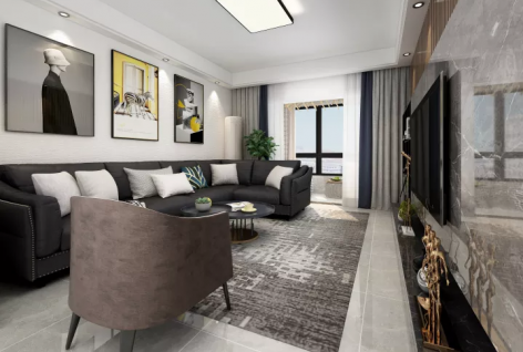 滨江帝景110平米现代简约风格三居室装修案例风效果图