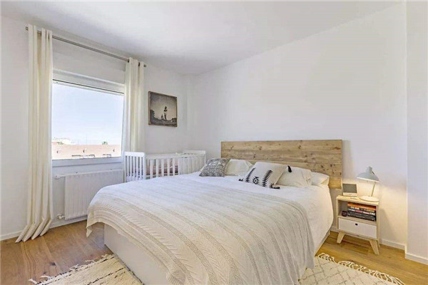 卧室墙面用白色搭配,能使卧室充满温和的氛围,再加上个性的小点缀,更能展现出白色的魅力。另外,加上高亮度的白色,还能使空间更具开阔感,使房间更加敞亮。