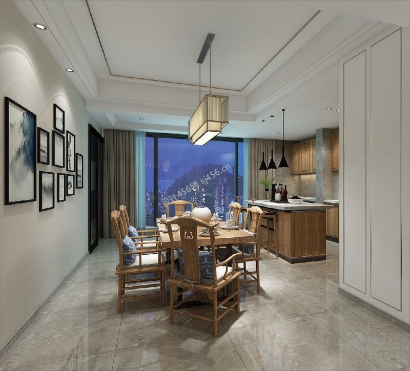 海长流128平米新中式风格三室两厅装修案例风效果图