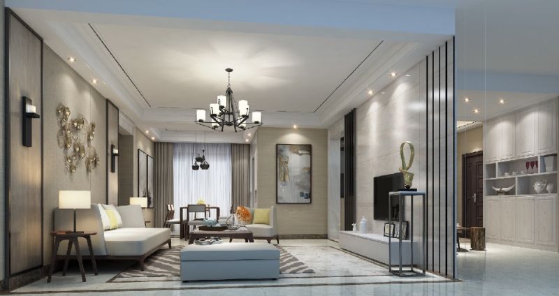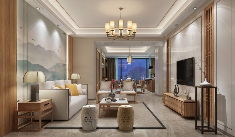 滨海国际125平米新中式风格三居室装修案例