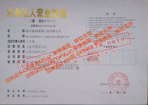 1、公司简介 海口嘉园装饰工程有限公司是一家具有十几年历史的国家二级资质企业。它成立于2000年,是集公装、家装于一体的全国性公司,其有北京十大诚信品牌企业,注册资金600万,具有国家施工和设计双资质,中国装饰协会会员单位。专门从事家居、别墅、办公空间、 商业空间的设计、施工一条龙服务,海口嘉园装饰工程有限公司领航海南装饰、设计理念风标,在装修行业中树立了良好的口碑,专业的才是值得信赖的! 我们嘉园装饰一直坚持走专业化发展道路,全力打造在室内装饰领域的专业品牌,在服务中,我们特别注重竞争的合理性和公平性。公司正朝着集体化、规模化方向发展迈进。经营企业就是经营人心,只有客户说好那才是真的好,我们的企业才会走得更快更远,海 口嘉园装饰工程有限公司始终把客户利益放在第一位,想客户所想,做客户所需。我们是一支充满激情与活力的团队!我们肩负重要的使命!为了打造海南第一装饰品牌,嘉园装饰人将不懈努力,和您一起创造美好的明天! 2、企业文化 设计理念:以人为本,创造出功能合理、舒适优美、满足人们物质和精神生活需要的室内环境!不但领引潮流,更要融入生活,让设计来源于生活,同时又要高于生活,追求艺术与技术的完美结合。嘉园装饰不断创新、不断进步,努力打造装饰行业的第一品牌。 质量理念:追求卓越,我们嘉园装饰对质量的把关从未放松过,我们有一系列的质量保障体系,不管是在设计造型、施工装修,以及质量验收的每一系列步骤,都力求完美,让客户对我们的设计装修放心、安心,更是有信心! 服务理念:真诚的对待每一个客户,用最省钱的办法设计出最适合客户的居室,相互沟通、相互合作,让每一个客户都成为我们嘉园装饰最好的朋友,真心服务、友情交往,实现双赢互信。 3、企业优势 私人订制、合理设计、品质与效果同在。 1,免费量房、免费预算。 2,真正按照室内使用面积报价。 3,预算价等于结算价。 4,省心——主材、基础装修工程、售后服务公司统一负责。 5,省钱——全部材料批发价格,无需考虑损耗。 6,环保——所有材料都达到超过国家环保标准。 地址:海南省海口市龙昆南路106号徽园陶瓷商业城一层B-101 更多活动敬请关注公司网站:http://www.jiayuanhn.com 客服电话: 0898-32875398 联系人: 王先生 联系手机:18976564229 E-mail : wangzhenzhao198679@qq.com QQ : 527805840