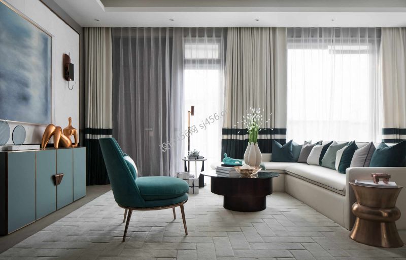 保利中央海岸125平米三居室美式风格装修案例风效果图