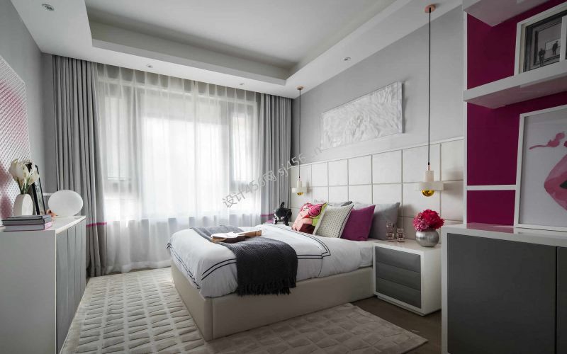 98平米二居室欧式风格主卧室背景墙挂画效果图