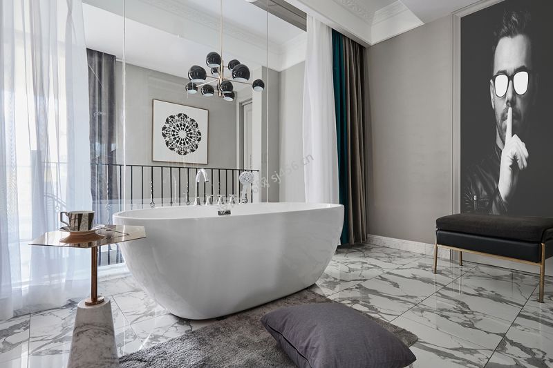 简欧风格130平米三居室卫生间浴缸装饰设计图