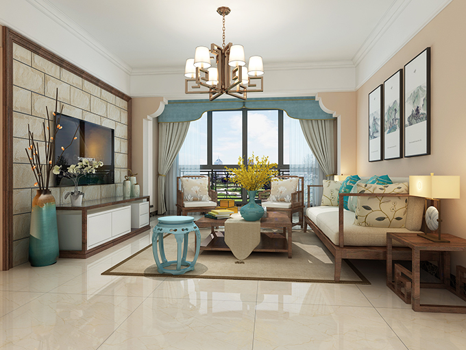国和苑102㎡新中式三居室装修案例