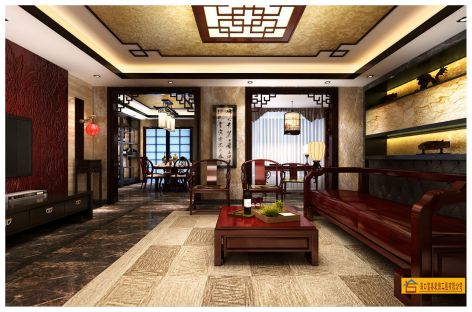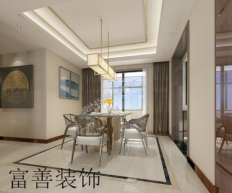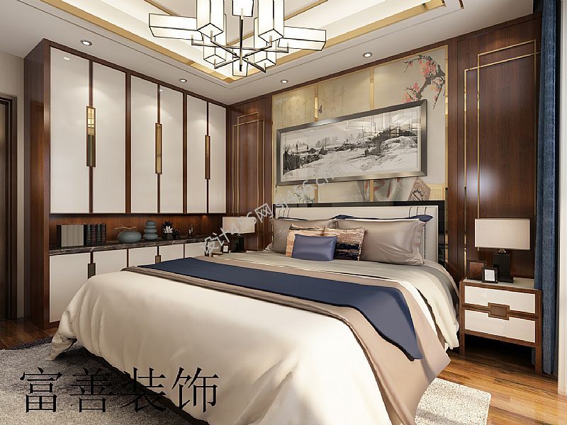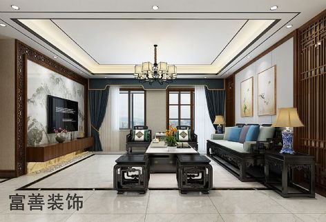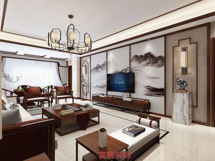 西溪里125平米新中式风格三室两厅装修案例风效果图