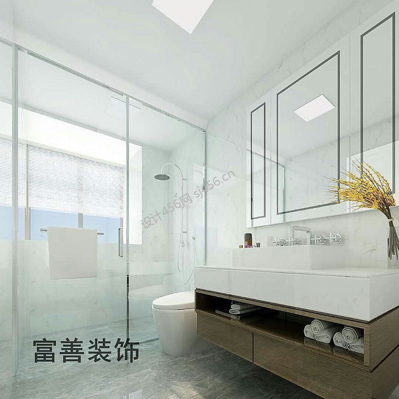 125平米新中式风格三室两厅卫生间玻璃隔断案例