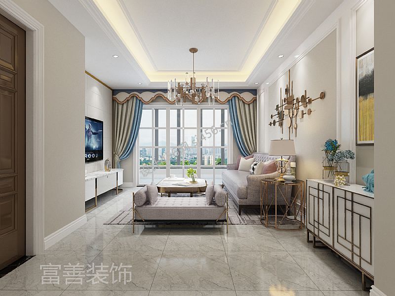 南国中心110平米三居室简约轻奢风格装修案例风效果图