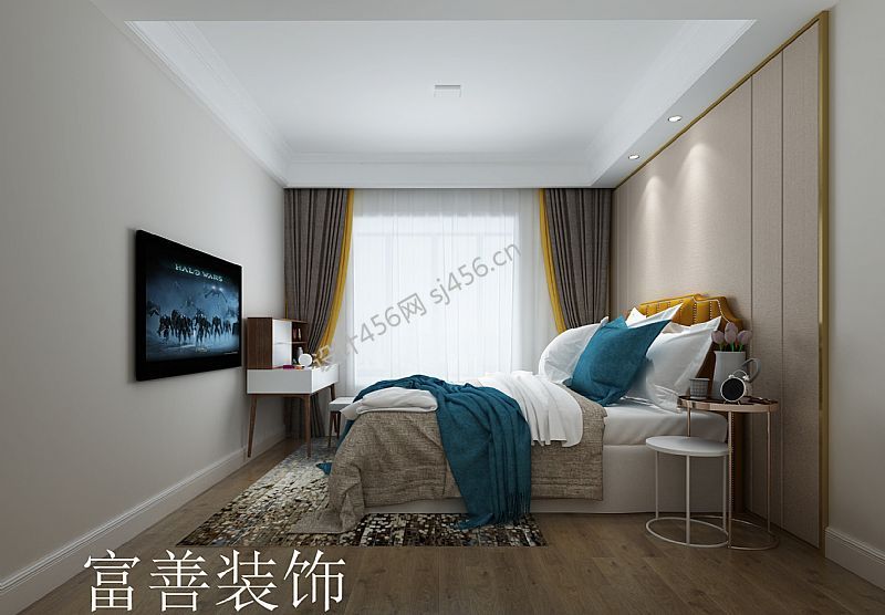 110平米三居室简约轻奢风格卧室电视墙设计图