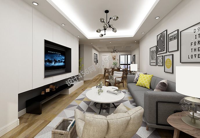115平米现代混搭风格三居室客厅过道吊顶设计图