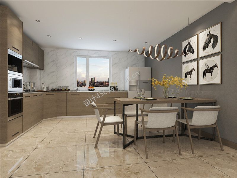 家庭现代简约风格开放式厨房餐厅装修效果图片
