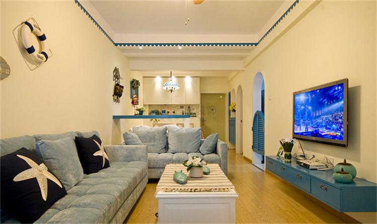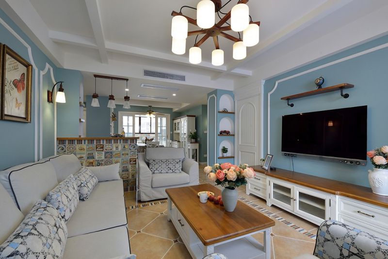 瑞兰上城10平米地中海风格三居室装修设计效果图