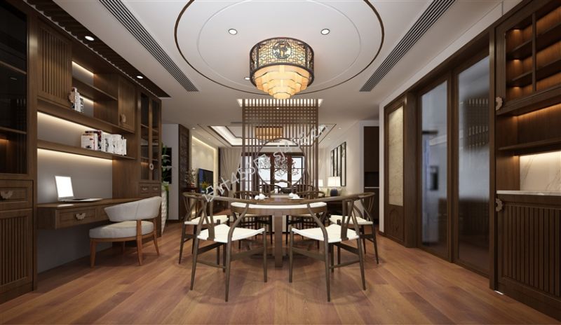 鸿扬家装 新中式风格三居128平装修效果图赏析