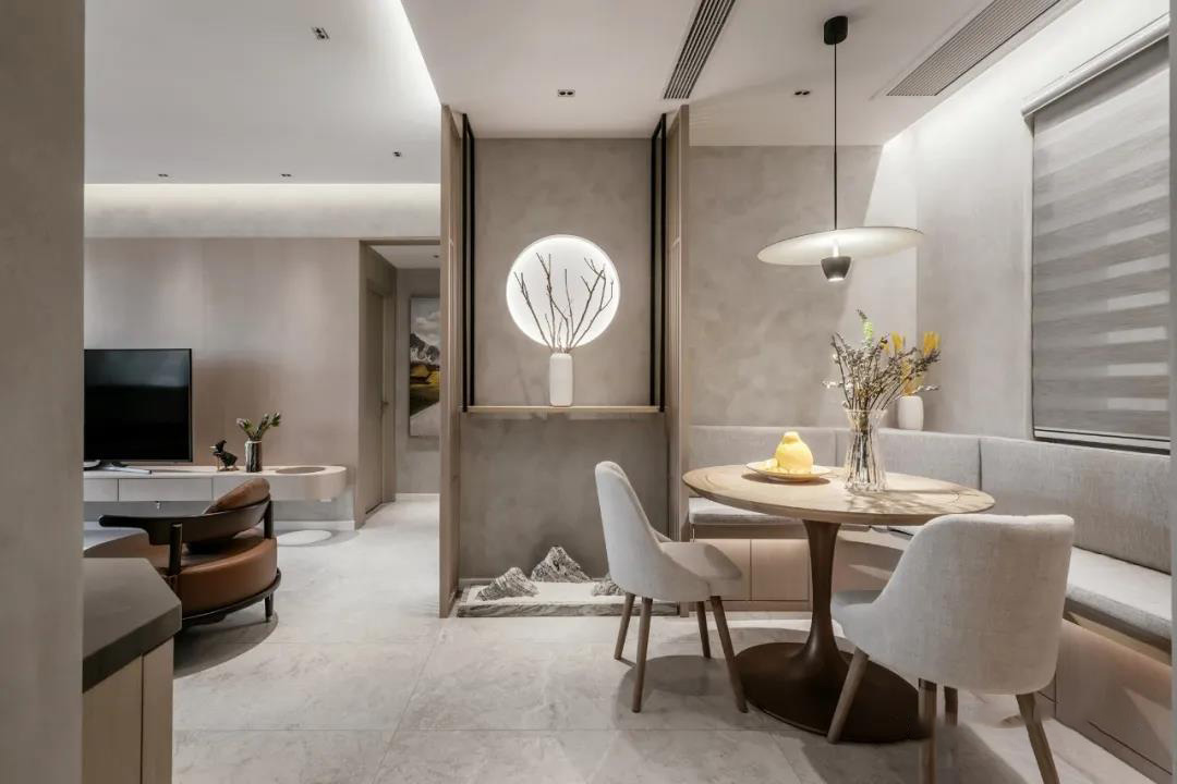 门外是山河远阔,门内是闲茶禅致。用色的深浅,造型的方圆,一点一线之间都流淌着对空间风格的诠释。