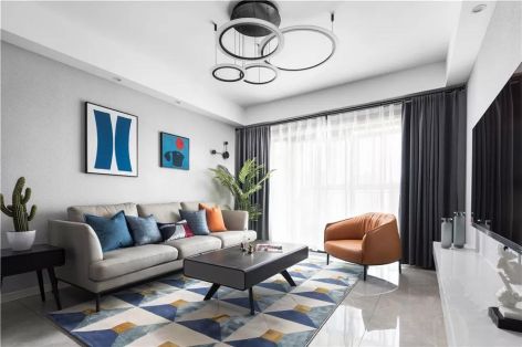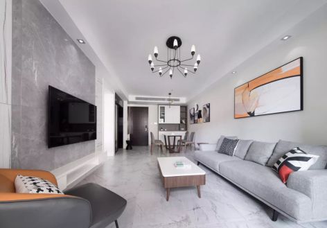 105㎡二居室现代简约客厅装修效果图