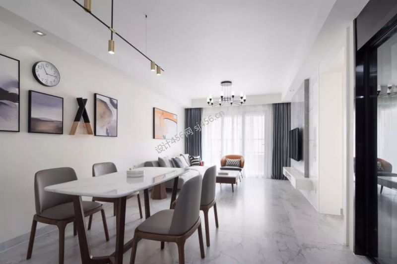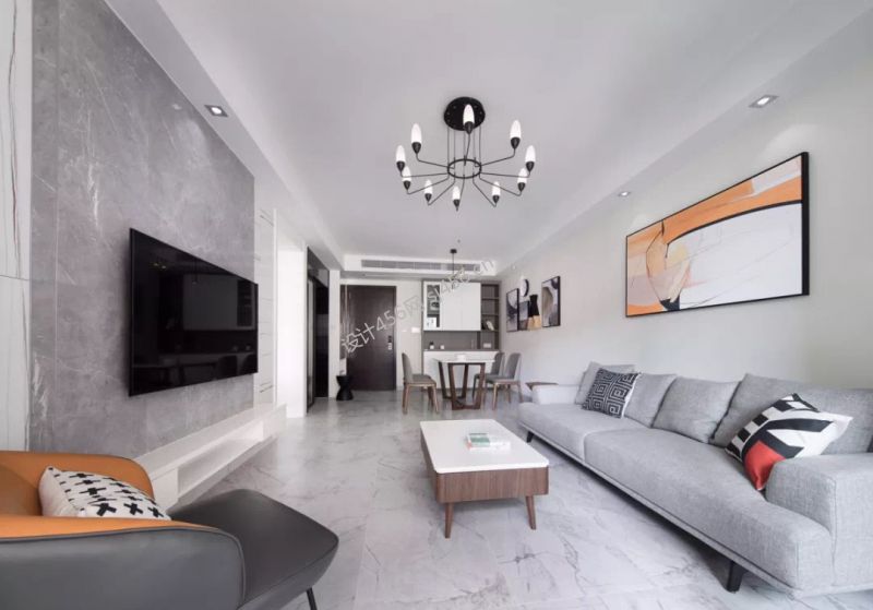 艺山南小区105㎡二居室现代简约装修案例风效果图