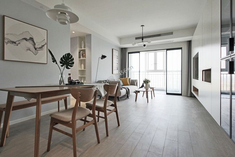 艺山南小区105㎡二居室现代简约装修案例风效果图