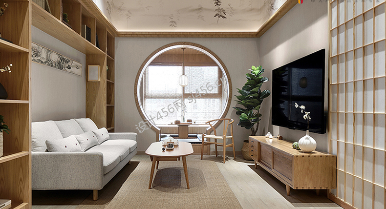 艺山南小区105㎡二居室现代简约装修案例风效果图