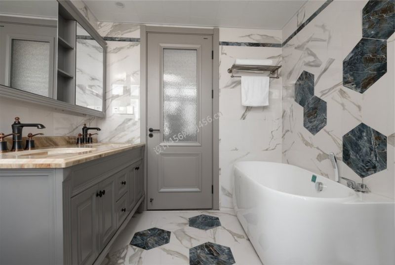 120㎡三居室现代美式卫生间吊顶装修效果图