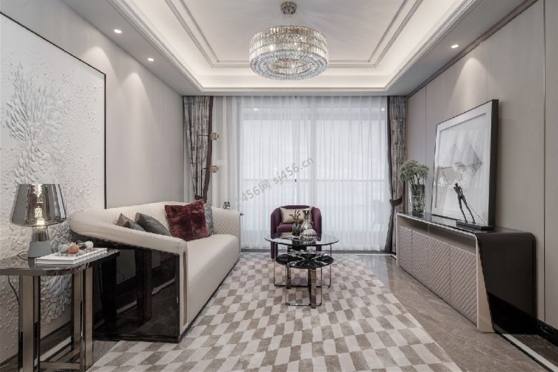 125平四居室现代轻奢客厅装修效果图