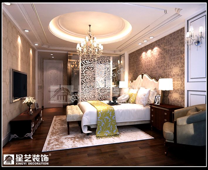 信谊四季城154平米三居室欧式风格主卧装修效果图