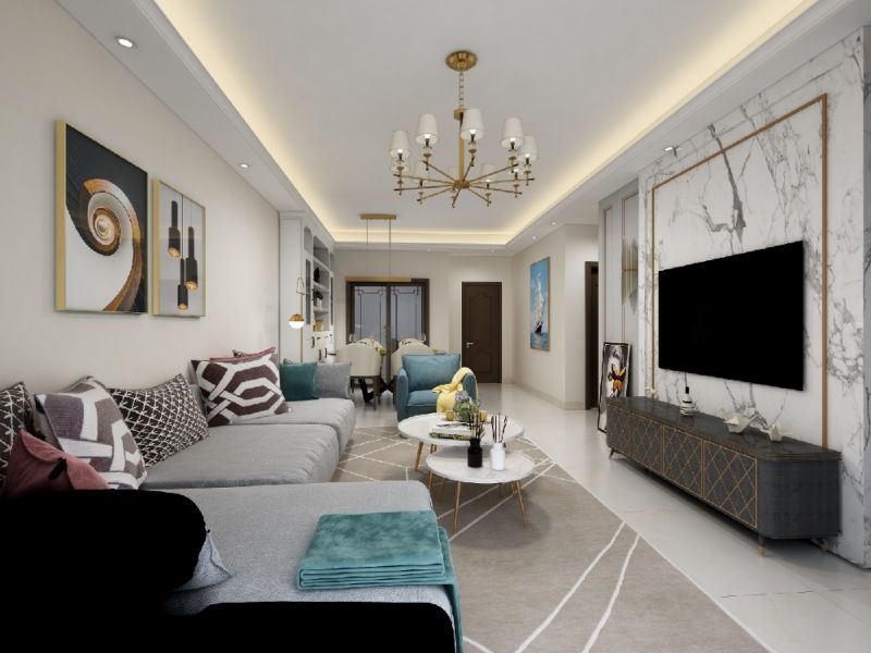 金地月伴湾117㎡三居室现代轻奢装修案例