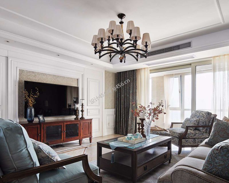 御江半岛美式风格125平米三室两厅装修案例风效果图
