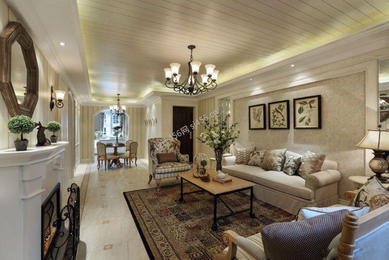 滨湖苑美式风格140平米三室两厅装修案例风效果图