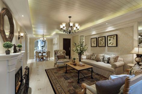 滨湖苑美式风格140平米三室两厅装修案例风效果图